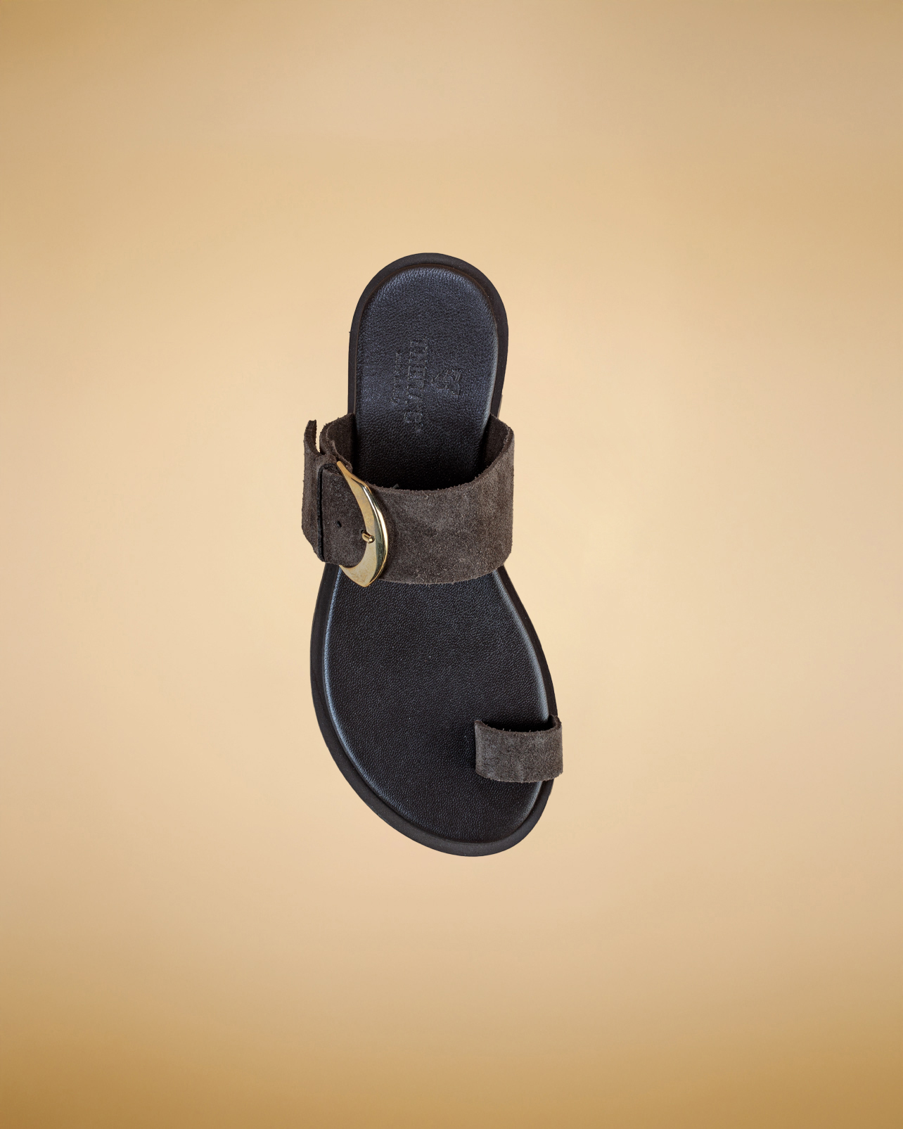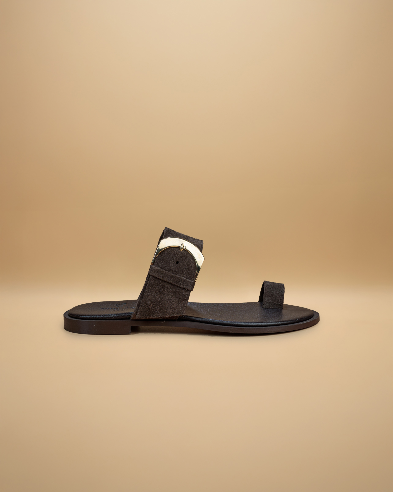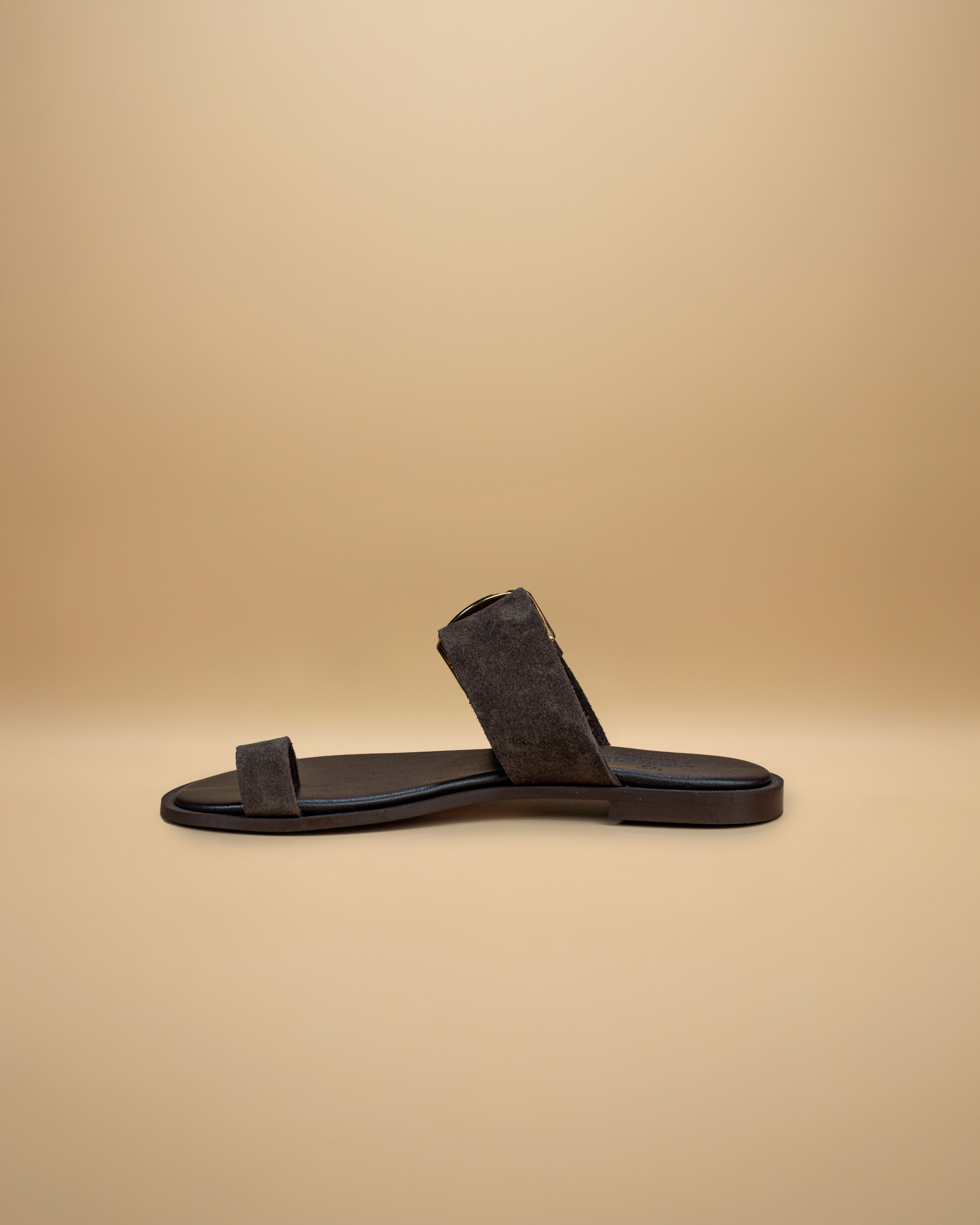 “Questo sandalo dallo stile essenziale e sofisticato è realizzato in morbida pelle scamosciata . Il design minimalista è impreziosito da una fascia ampia sul collo del piede, regolata da una fibbia che aggiunge un tocco elegante e contemporaneo.